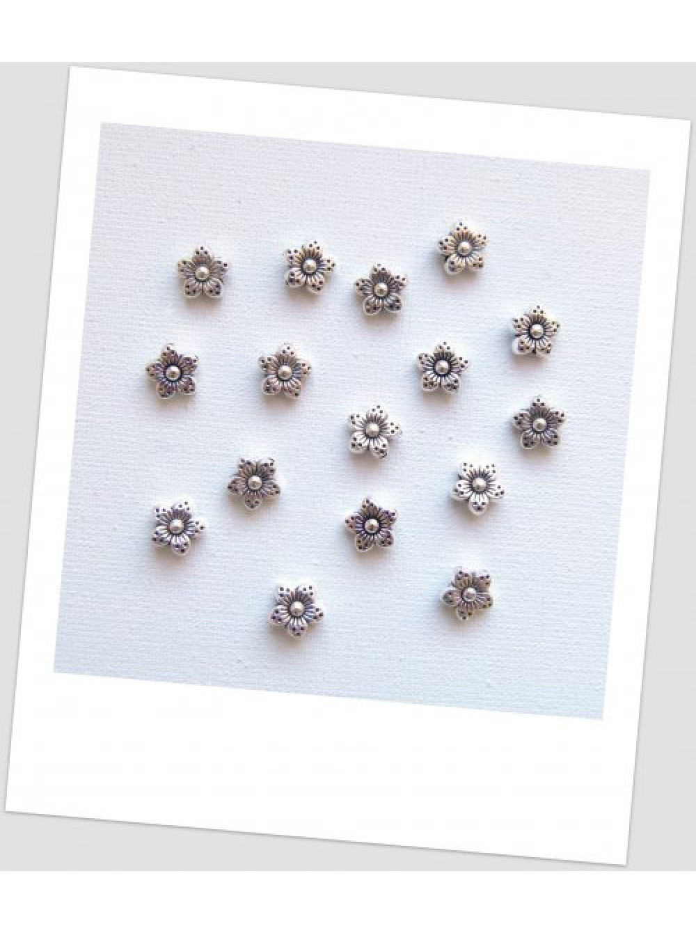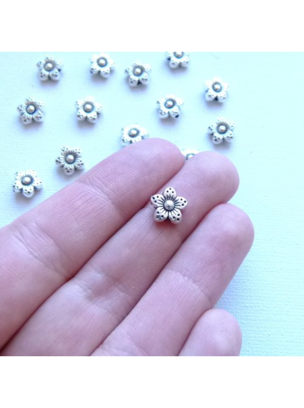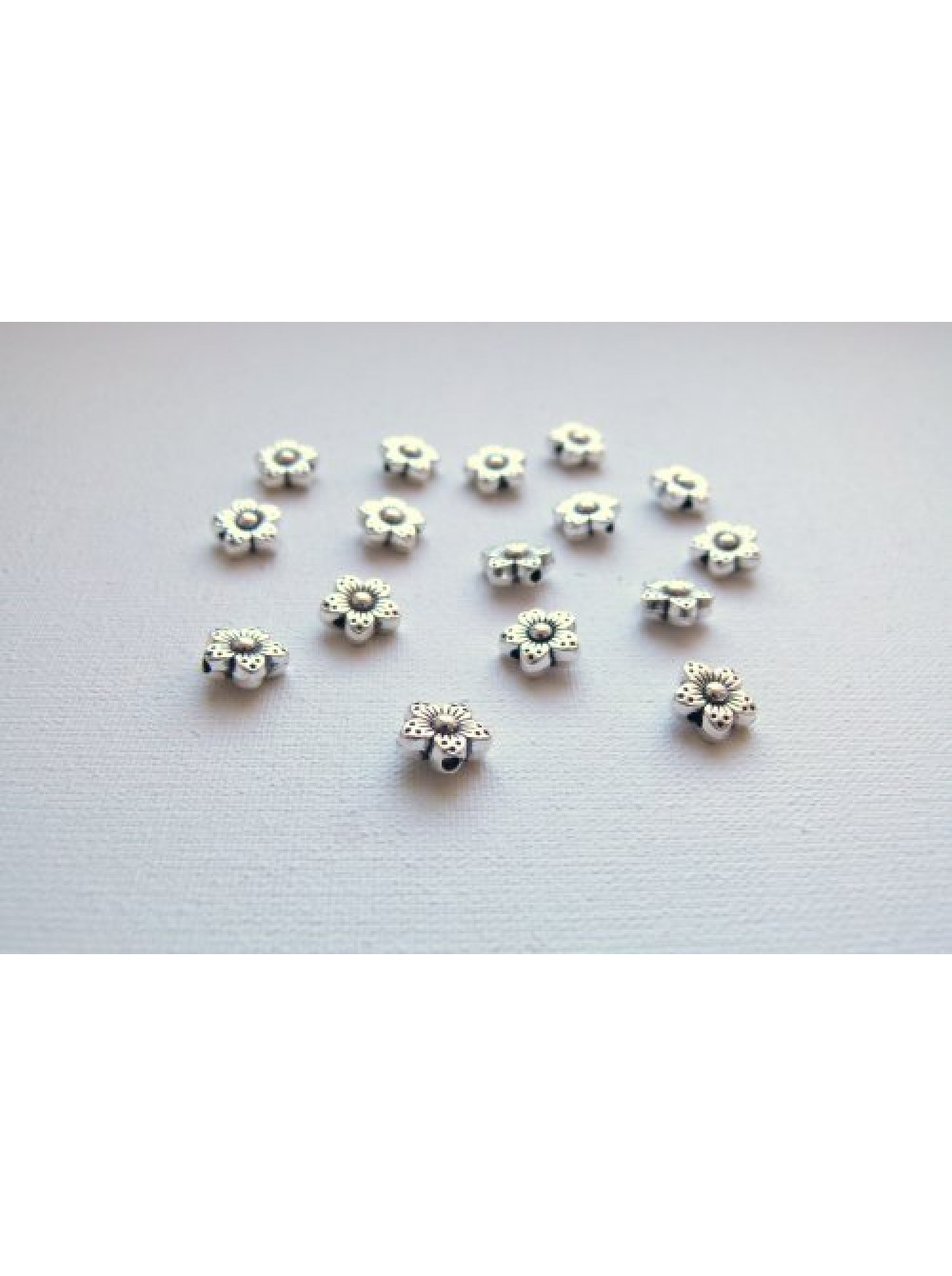 Бусина металлическая двухсторонняя в форме цветочка, цвет стальной, 9 мм, упаковка - 10 шт. (id:140113)