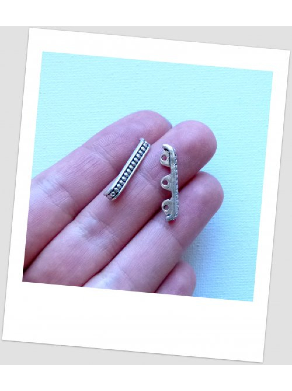 Коннектор металлический, три отверстия, цвет: старинное серебро, 24 х 5 мм. Упаковка -6 шт. (id:310020)